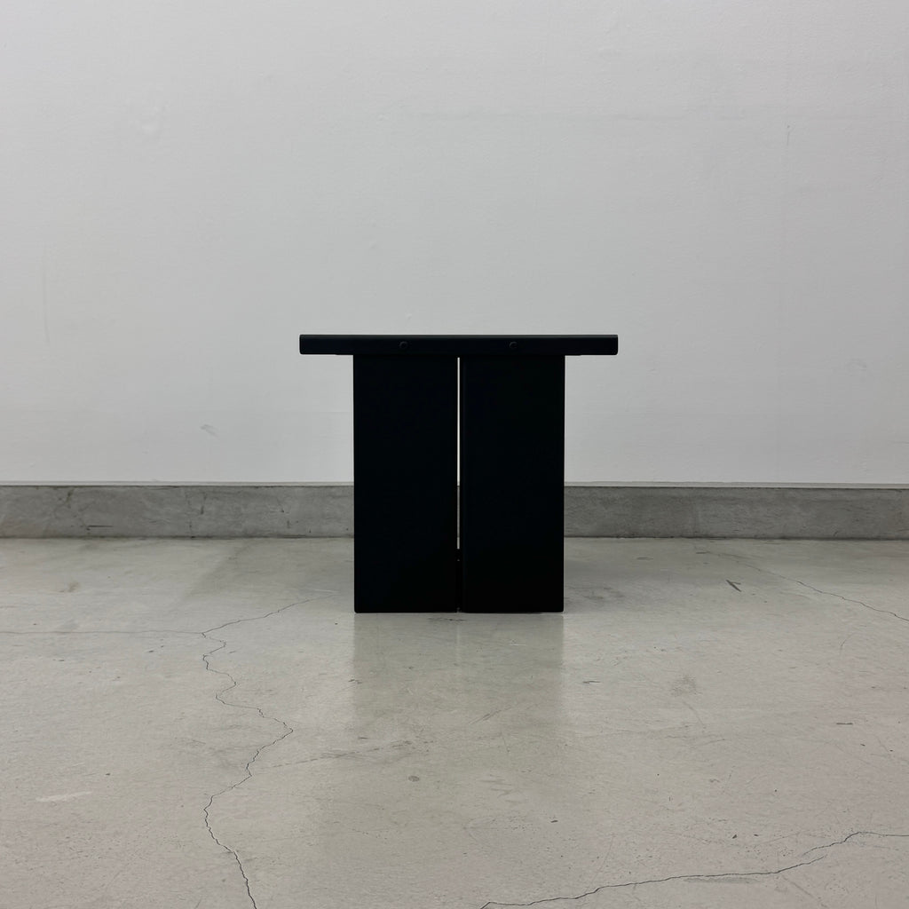 建築的なロジックを家庭的なスケールへと落とし込んだテーブル。アルミニウムプレートを用い、独自の「II システム」で構成された構造は、耐久性と抑制された美しさのバランスを保っています。規律ある幾何学の中に、弧(アーク)を描くことで構造に柔らかさを導入。モジュール式の構成により、その完全性を保ちながら、周囲の環境に合わせて再構成することが可能です。